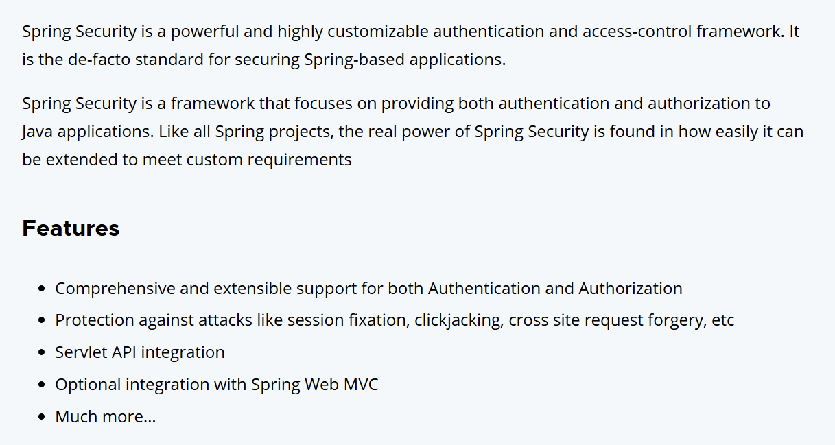 - Spring 기반 애플리케이션의 사실상 표준 보안 프레임워크