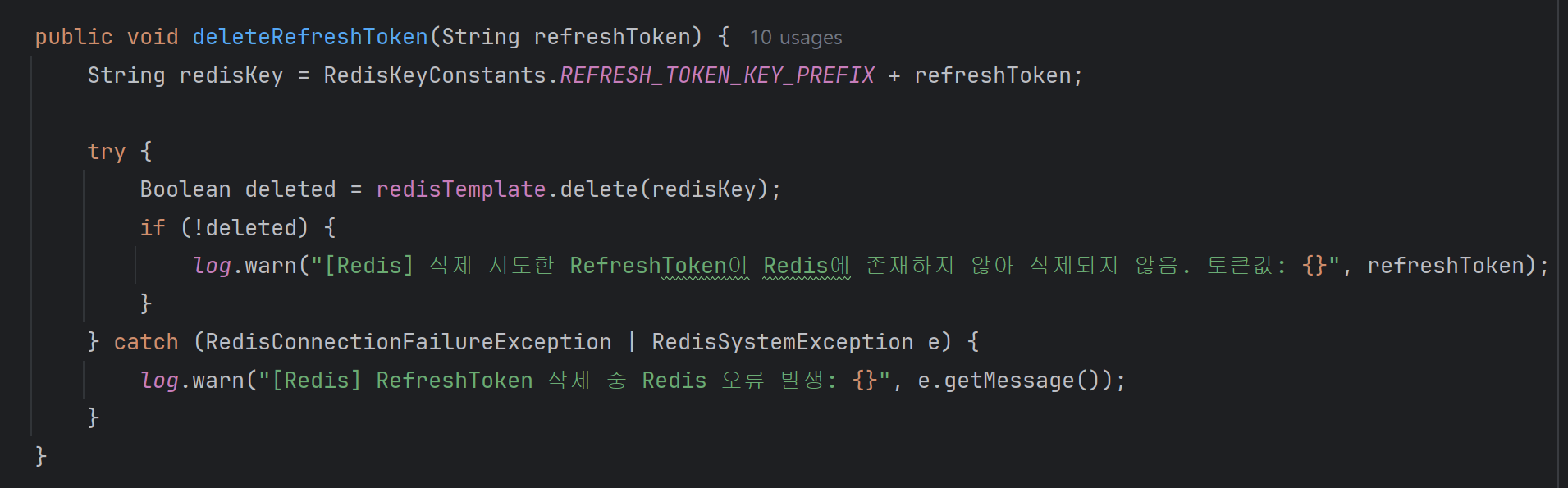 로그아웃 시 이 값을 삭제함으로써 이후 해당 토큰을 사용한 Access Token 재발급 요청을 차단할 수 있다.