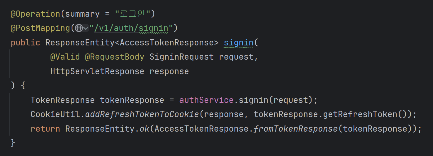 - Refresh Token : CookieUtil을 통해 응답 쿠키에 저장