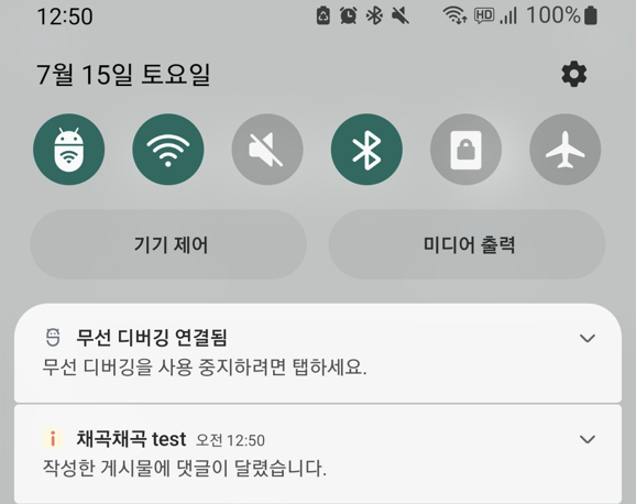 ์๋ฆผ์ ๋์์ ์ด๋ ๊ฒ ๋ฐฑ๊ทธ๋ผ์ด๋ ์ํ์ธ์ง, ์๋์ง์ ๋ฐ๋ผ ๋ฌ๋ผ์ง๋ค. ๋ฐฑ๊ทธ๋ผ์ด๋๊ฐ ์๋ ํฌ๊ทธ๋ผ์ด๋ ์ํ์์ ์๋ฆผ์ ์์ ํ๋ ค๋ฉด onMessageReceived ์ฝ๋ฐฑ์ ์ฒ๋ฆฌํ๋ ์ฝ๋๊ฐ ํ์ํ๋ค.